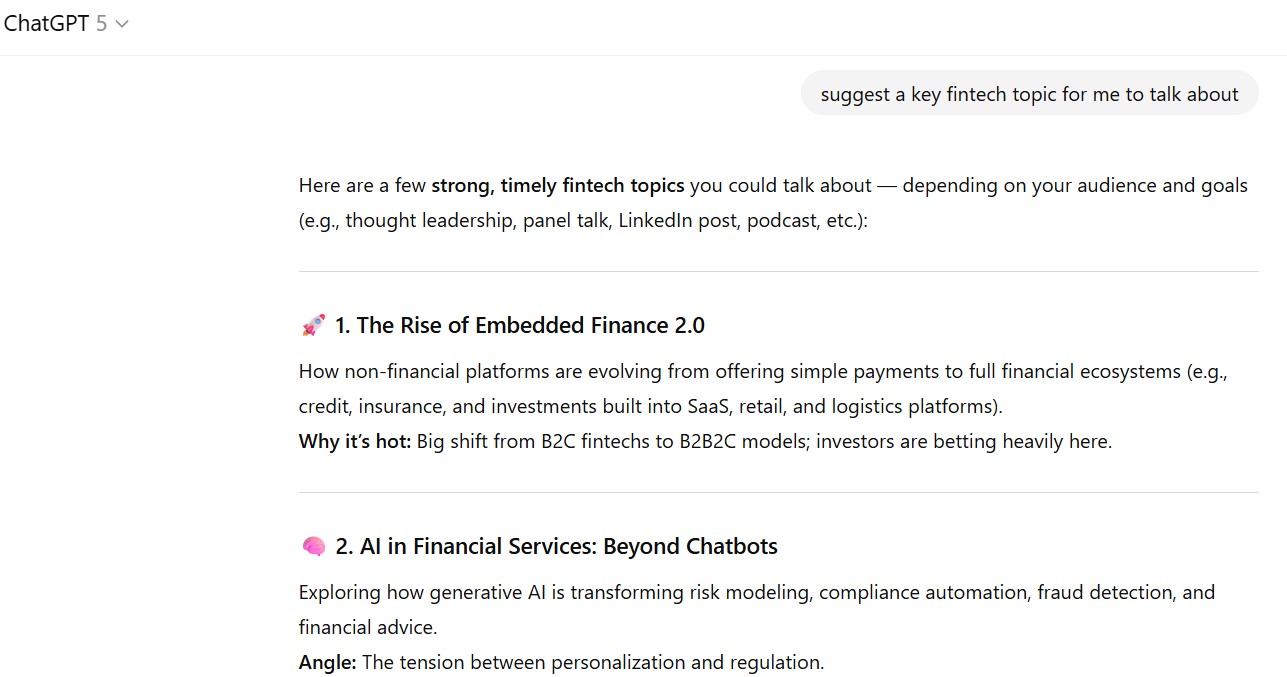 Giving away one of my trade secrets, I asked ChatGPT to give me suggestions about what to blog about and it came up with seven things: