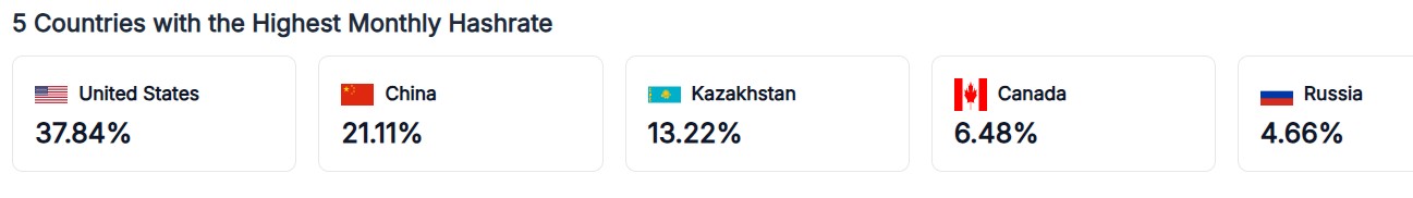 It worked for five minutes, but China is now back to being the second largest bitcoin mining community in the world after the USA (I was a bit surprised to see Kazakhstan in third place!).